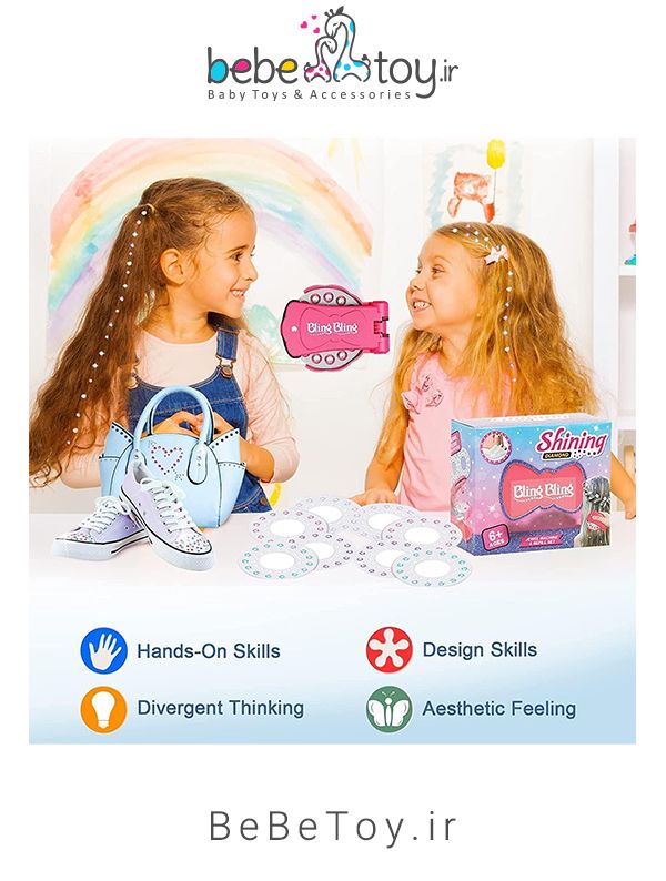 این نگین های جذاب قابلیت چسبندگی به روی مو، کفش، کلاه، لباس، دوربین، کیف پول و…. دارند. کودکان می توانند با قرار دادن این دستگاه به روی محصول مورد نظر و فشار دادن آن ، نگین ها را بچسبانند. این محصول از متریال با کیفیتی ساخته شده است و خلاقیت را در کودکان افزایش می دهد. همچنین سبب تقویت هماهنگی بین چشم و دست آن ها می شود. این دستگاه باعث می شود کودکان با دوستانشان لحظات شادی را تجربه کنند و به همراه یکدیگر با این نگین های رنگی، زیبایی های وسایل خود را افزایش دهند.