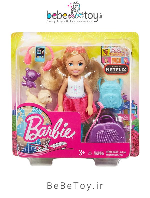 عروسک باربی مسافرتی چلسی ومجموعه همراه آن با مضمون سفرو با الهام ازماجراهای باربی باقطعات رنگارنگ خود ذهن کنجکاو کودک راباخودبه سراسرجهان میبرد و نگاهی است به زندگی روزمره باربی هنگامی که او شروع به ماجراهای هیجان انگیزبا خانواده و دوستان خود میکند!