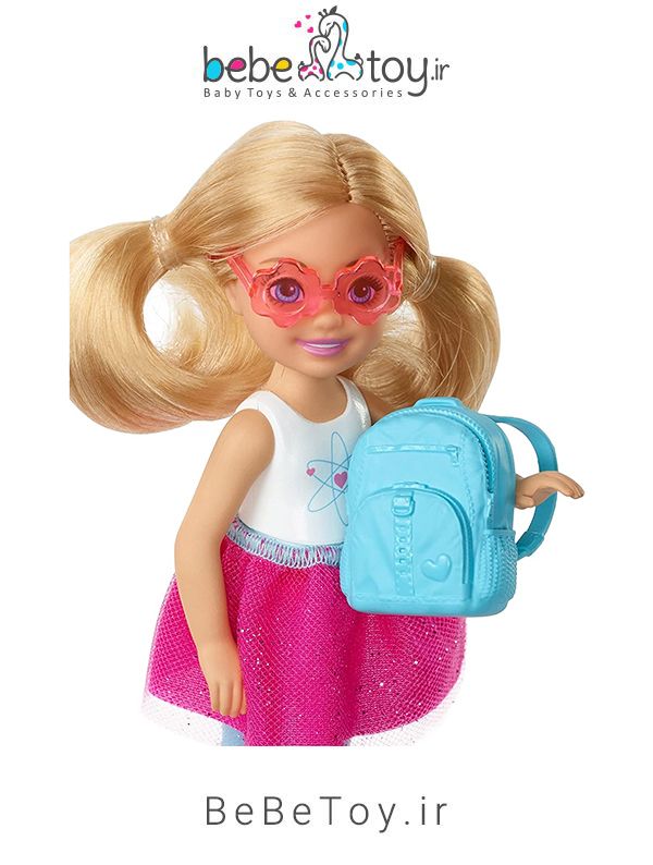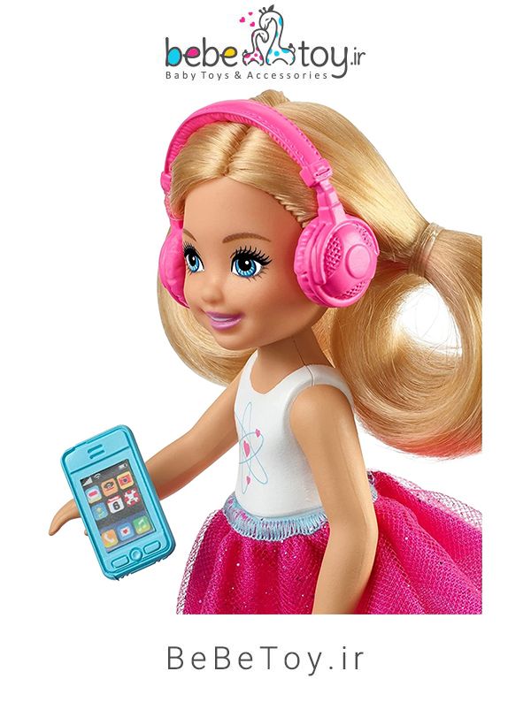 من به شما میگم. عروسک باربی چلسی کوچولوی ما تلفن همراه، خرس عروسکی او، هدفون صورتی و عینک آفتابی که اون هم صورتی هست را همراه خودش برداشته.